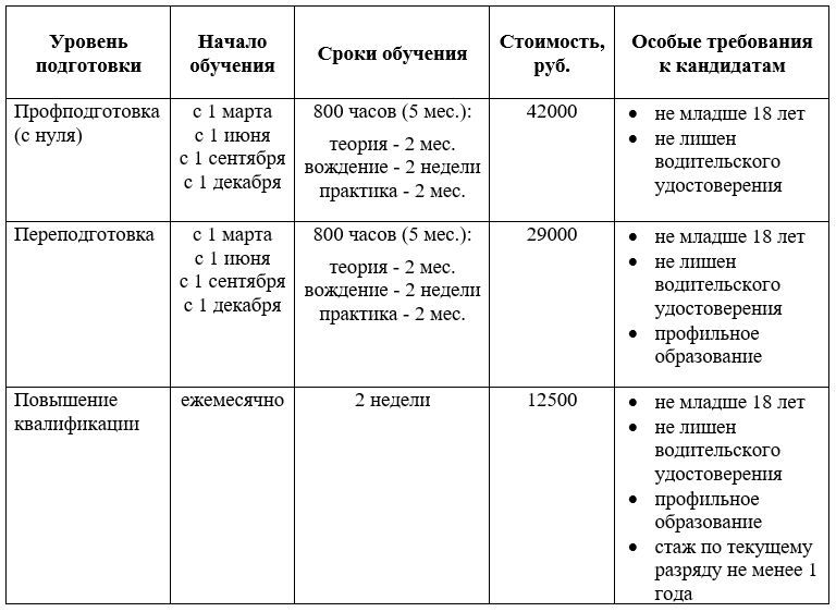 По окончании программы профподготовки (с нуля) и переподготовки выдается 5 разряд.
