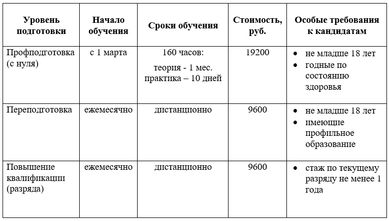 Программы и сроки обучения на контролера