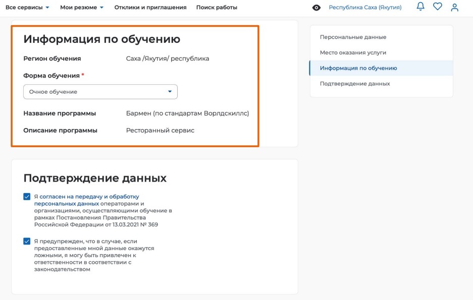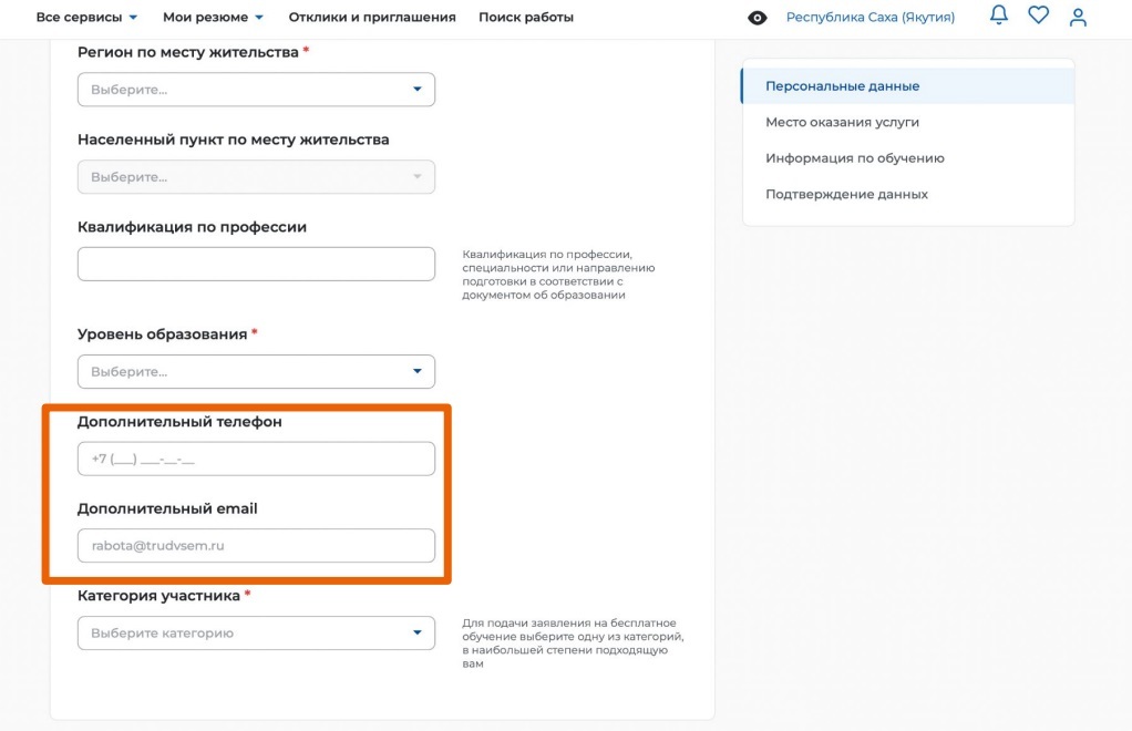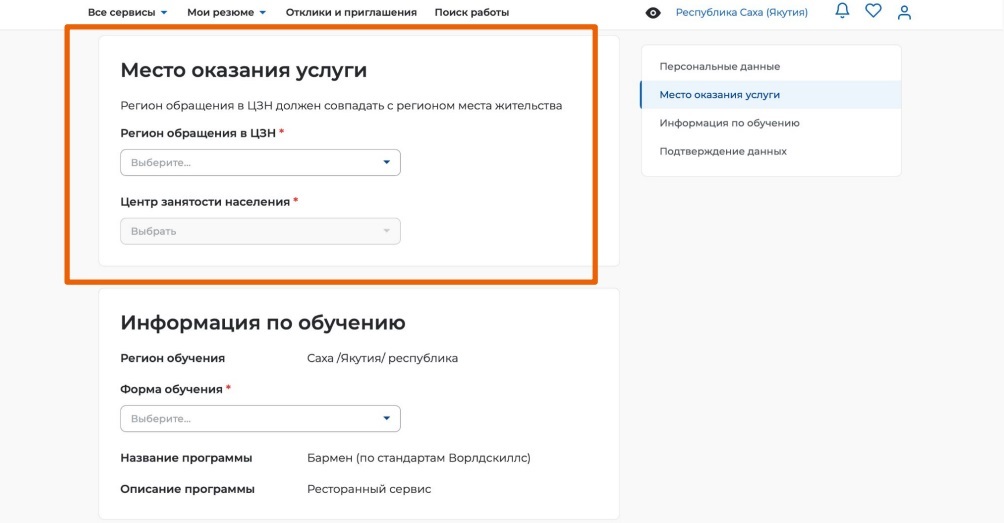 - выберите регион по месту жительства - Республика Саха (Якутия)