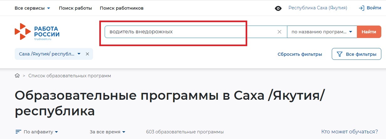 Для удобства поиска программы обучения можете "вбить" в поисковике "Водитель внедорожных" и нажмите "Найти".